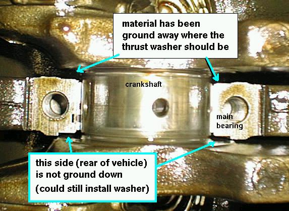 It seems that on either side of the number three main bearings, there are flat surfaces that serve as thrust bearings to keep the crank from sliding end to end. For these to work properly, the matching surfaces on the crankshaft need to be a certain distance apart. When Ayron first took his crank to the machine shop, they neglected to check this critical measurement, and went and ground the rest of the bearing surfaces as specified. I am afraid this is the same thing that has happened to Marc. Toyota must be the only manufacturer that makes their engines like this.